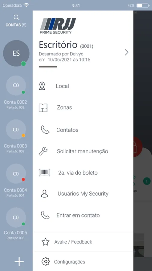 O RJJ Security é um aplicativo móvel onde o cliente monitorado pode acompanhar diretamente via celular ou tablet todas as atividades do seu sistema de segurança. Por meio do aplicativo, é possível saber o status do painel de alarme, armá-lo e desarmá-lo, visualizar as câmeras ao vivo, verificar eventos e ordens de serviço abertas, além de realizar chamadas telefônicas para contatos cadastrados no seu perfil. Segurança e tecnologia que você precisa de um jeito prático e fácil na palma da sua mão.