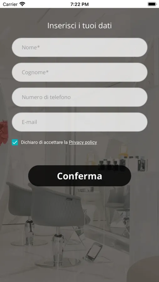 Inserisci i tuoi dati, scegli i trattamenti di cui hai bisogno e prenota con il tuo operatore preferito.