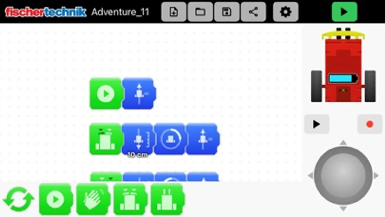 Ein eigenes Programm zu schreiben und einen Roboter zum Leben zu erwecken ist unglaublich spannend und aufregend! Diese Technik ist aus der heutigen Welt nicht mehr wegzudenken. Um auch den Jüngsten dieses spannende und wichtige Thema näher zu bringen, ist unser fischertechnik Early Coding genau richtig. Der Einstieg in die Welt der Informatik und Robotik gelingt durch die fertigen Komponenten mit viel Spielspaß und Begeisterung. Die zwei Motoren und Sensoren sind in einem Block fix und fertig integriert. Das heißt: einschalten, mit dem mobilen Endgerät über Bluetooth verbinden und loslegen! Die einfache grafische Programmierumgebung mit den vorgefertigten Beispielen ist altersgerecht aufgebaut – perfekt für den Start in die Welt der Robotik! Das erste eigene Programm zu erstellen ist mit der Software ebenfalls kinderleicht möglich.
