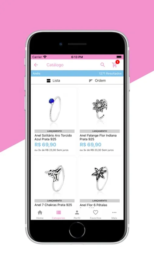- Confira nossas categorias de anéis, berloques, pulseiras, brincos, colares, piercings e etc.;
