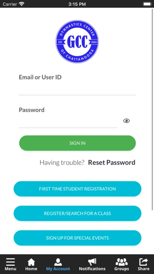 The Gymnastics Center of Chattanooga app allows you to manage your account with ease, register for classes, parties, and special events. You'll also receive important notifications about class changes, closings, registration openings, special announcements, and upcoming events.