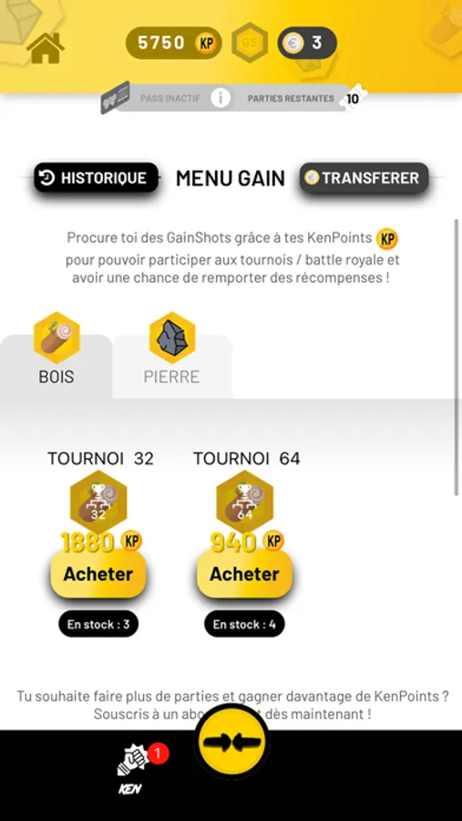 - Partie à gain dynamique : défie tes amis ou d’autres joueurs sur ton jeu ou ton sport favori en misant tes KENPOINTS pour remporter du CASH !