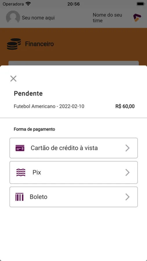Nossa missão é auxiliar nos processos de pagamento de mensalidades e produtos, onde é possível gerir e pagar as suas mensalidades e cobranças do time que você já faz parte, direto do seu dispositivo.