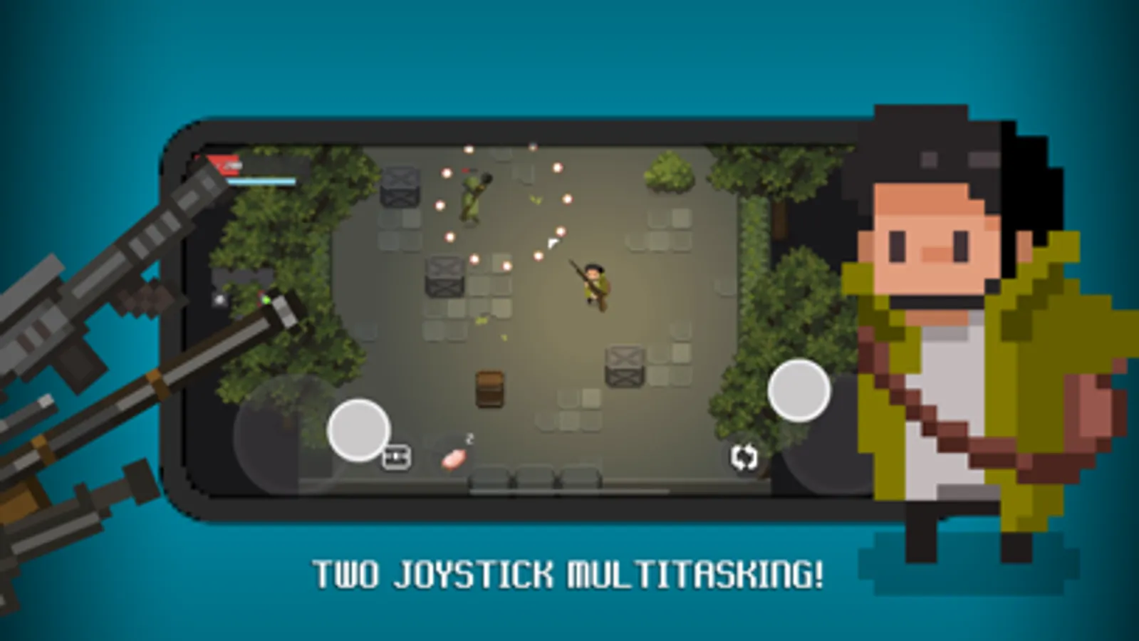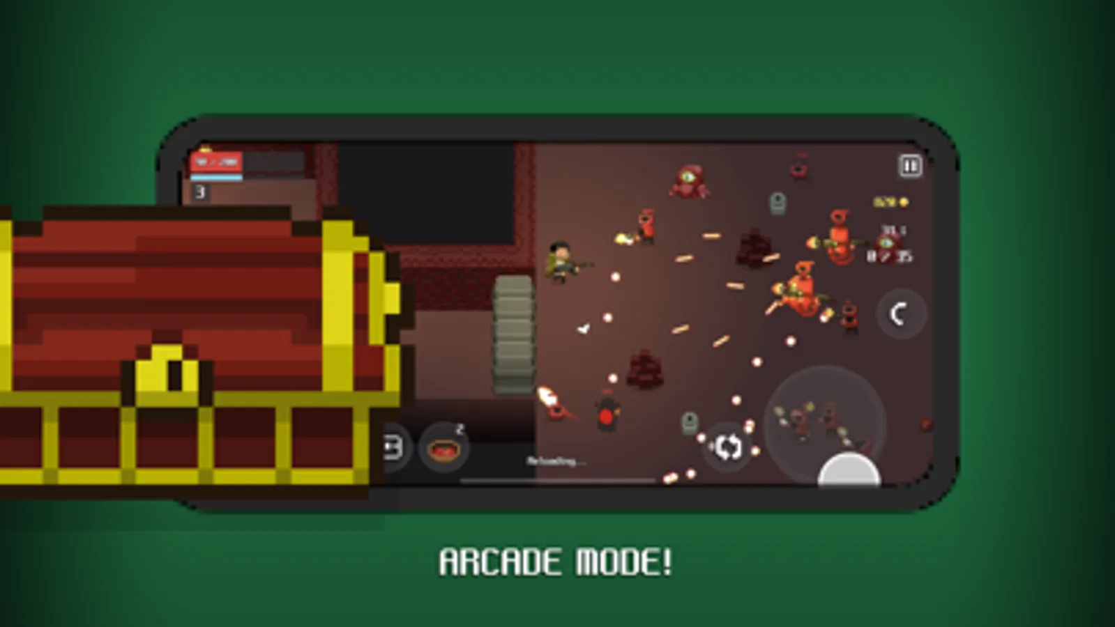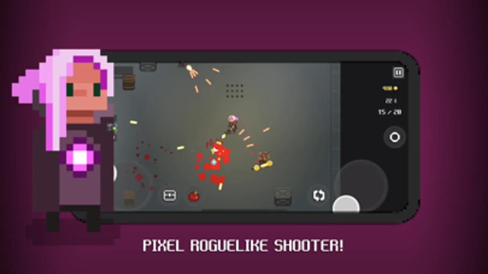 DAWNGEON is a pixel graphic mobile RPG (role-playing game) adopted from roguelike (random generated dungeons and monsters) gameplay. The player uses two joysticks to move and attack, which requires a lot of skills to master. Around 50 different items and weapons with interactable objects enable fun gameplay! The player can fight, cook, grow, and explore.