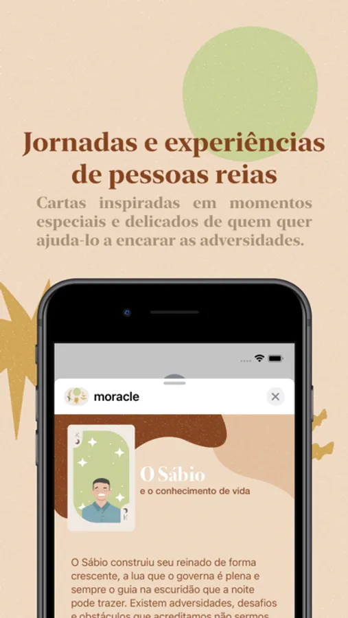 Um oráculo interativo que te acompanhará em seus hábitos matinais. Com uma grande quantidade de cartas, receba mensagens e orientações baseadas em experiências e jornadas pessoais de pessoas do mundo todo.