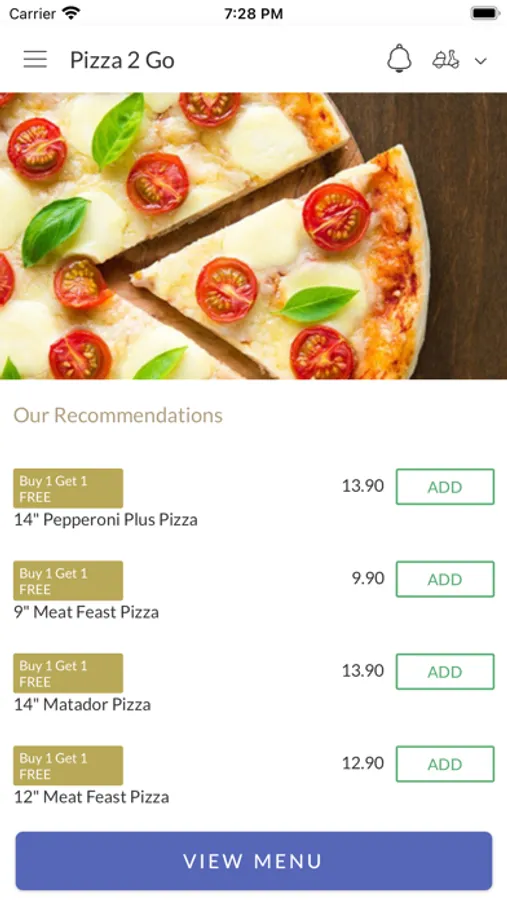 Order food online from Pizza 2 Go! It's so easy to use fast and convenient. Try our new online app which contains our entire takeaway menu. We’re passionate about providing delicious and high-quality food, our priority is to satisfy all of our customer's needs - we offer a variety of excellent food, prepared with the freshest and finest ingredients, to the highest standard.