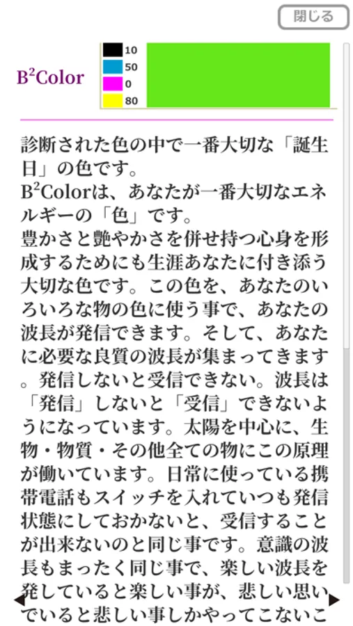 カラーパスポートには 診断された色の中で一番大切な「誕生日」の色であるB2 Colorをはじめ、9種類の目的に合わせた色が記されています。