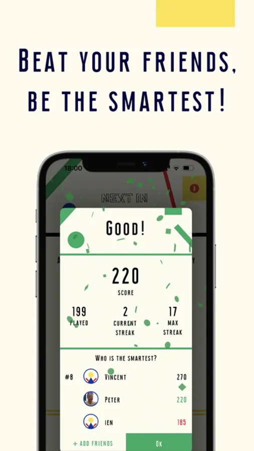 Recently, the extensive COGITO Study at the Max-Planck Institute demonstrated that training with brain exercises improves working memory for people of all age groups. SmartFriends offers everyone, all over the world, the same daily challenge, in the form of a logical IQ test. It can be a number sequence, a Matrigma test, or anything that will start a brain crunching. Solved the test? You'll share your score and challenge your friends. After all, we all have that competing spirit and this keeps you motivated!