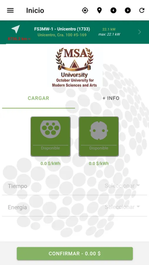 Link2Green muestra la ubicación, la información y el estado de los distintos cargadores, permite al cliente activarlos e iniciar una carga, mostrándole gráficamente el proceso en tiempo real.