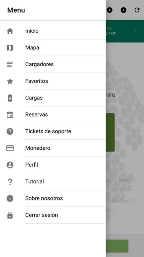 - Mapa: indica la posición en la que se encuentra el usuario y la de los cargadores.