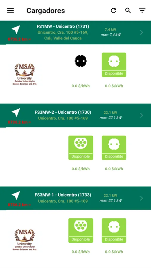 - Lista de cargadores: se muestra la información detallada de cada cargador.