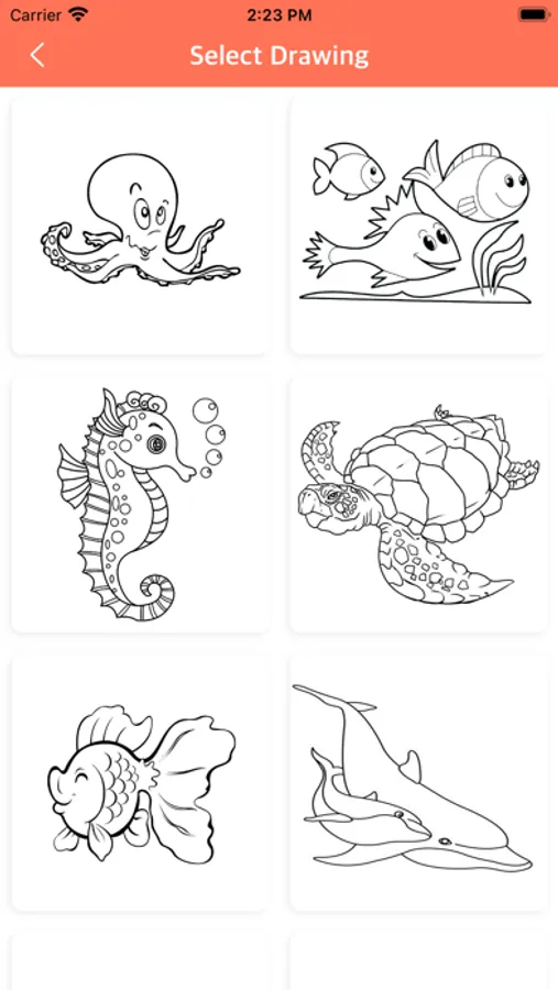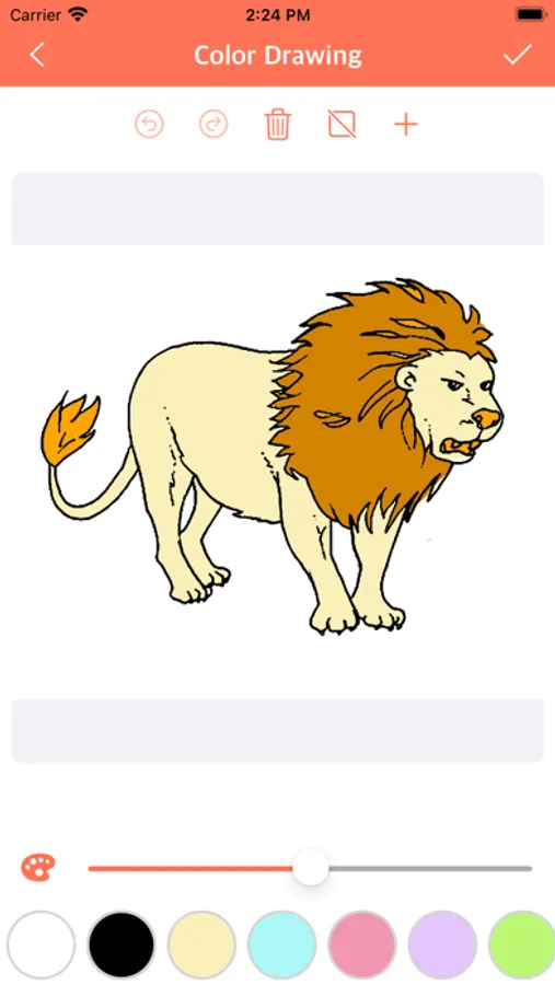 Tap to fill in the blank colouring book pages with a dozen bright and fun colours!