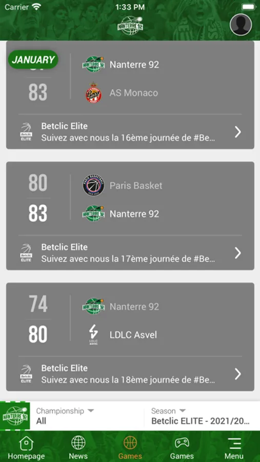 - Earn points by showing up at the stadium during the match days and by participating at quizzes, poll or predictions