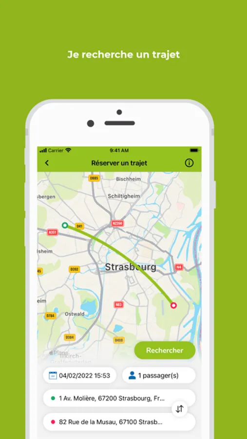 Mobistras permet aux usagers déjà inscrits de réserver un trajet d’une adresse à une autre adresse au sein des 33 communes de l’Eurométropole ou du centre-ville de Kehl.