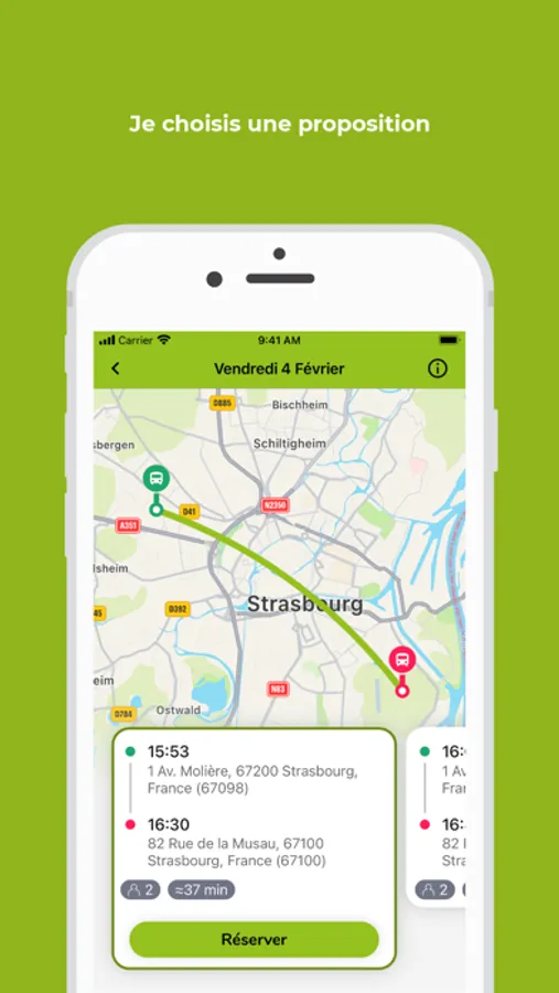 Un trajet peut être réservé entre 14 jours et 2h avant le départ.