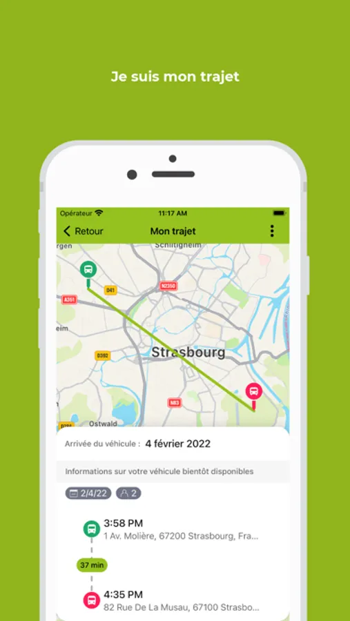 L’application proposée par Mobistras permet aux usagers inscrits de gérer leurs trajets. Avec Mobistras il est possible de réserver un trajet, de le consulter ou encore de l’annuler.