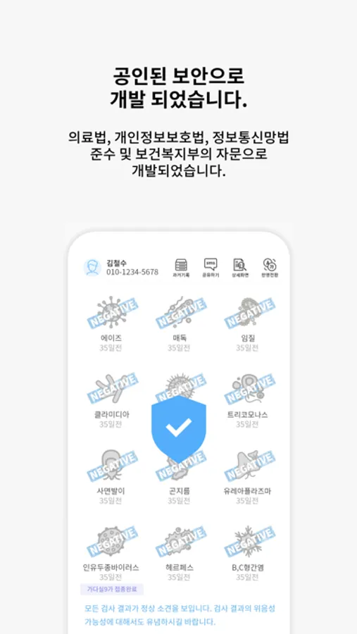 - 자신의 성병검사결과를 걱정하지 말고 모바일로 안전하게 관리하세요.