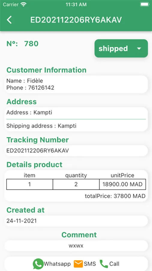 Delivery and order management application, for the delivery agent.