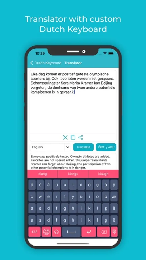 • Another important feature in the Dutch keyboard and Translator, and one that makes this the best Dutch keyboard and Translator for iOS is its adaptability with apps. Use the keyboard extension feature to type Dutch directly into any app.