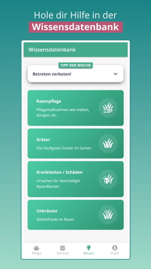 Der Wissensteil gibt Einsteigern und Fortgeschrittenen noch das notwendige Know-How mit an die Hand. Die Kategorien Gräser, Pflege, Krankheiten und Unkräuter bieten in weiteren Unterkategorien genügend Möglichkeiten zum Stöbern.