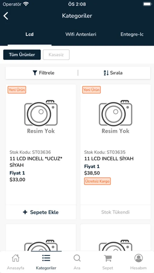 * Ürün kategorilerinde filtreleme yapabilirsiniz.