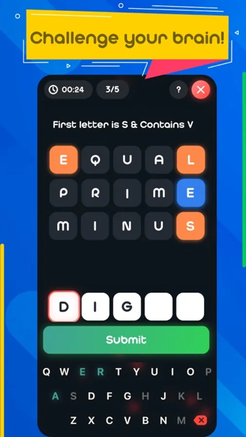 →Orange block means that the letter exists in the final word but is not in the right place.