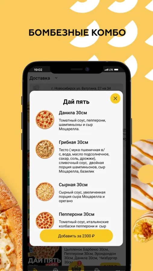 Выбирайте классическую Пепперони, жгучую Мексиканскую PRO или другую любимую пиццу, сочные стрижи, суперсэндвичи или вкусные натуральные десерты. И забирайте заказ уже через 20 минут в любой точке или закажите доставку.