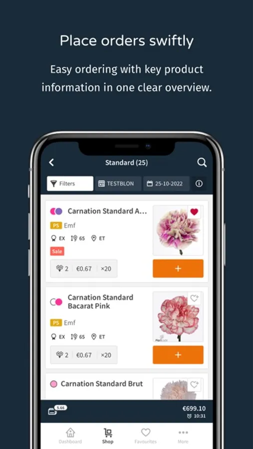 With the Flying Dutch Flowers app for phone as well as tablet, you always have direct access to a wide selection of daily fresh products. You can also view orders, top up or create new orders from any location: on the road, from your holiday destination, the shop, or from the comforts of your own home. The Flying Dutch Flowers app offers everything wholesale companies need for quick and easy stock management.