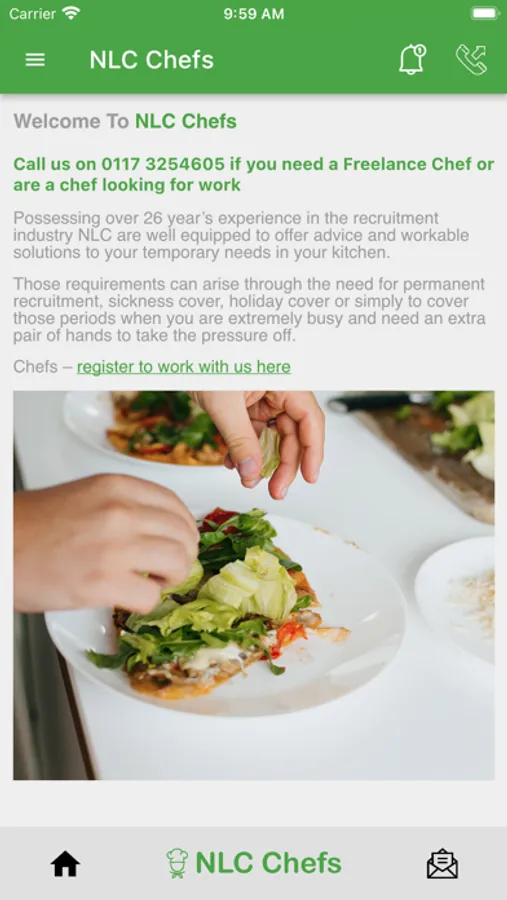 Jobs portal for freelance chefs in the UK. Register with the app and receive push messages of vacancies in your area for your skill set. Register via the app.