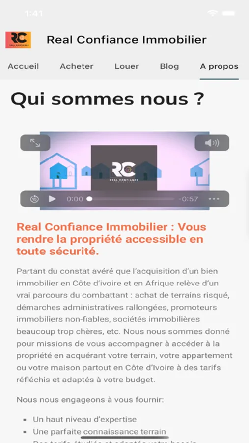 Pour tout achat, vente ou la location de bien immobilier en Afrique, Real Confiance Immobilier s’engage à vous fournir : un haut niveau d’expertise, une parfaite connaissance du terrain, des tarifs étudiés et adaptés à votre budget et un service client de qualité.