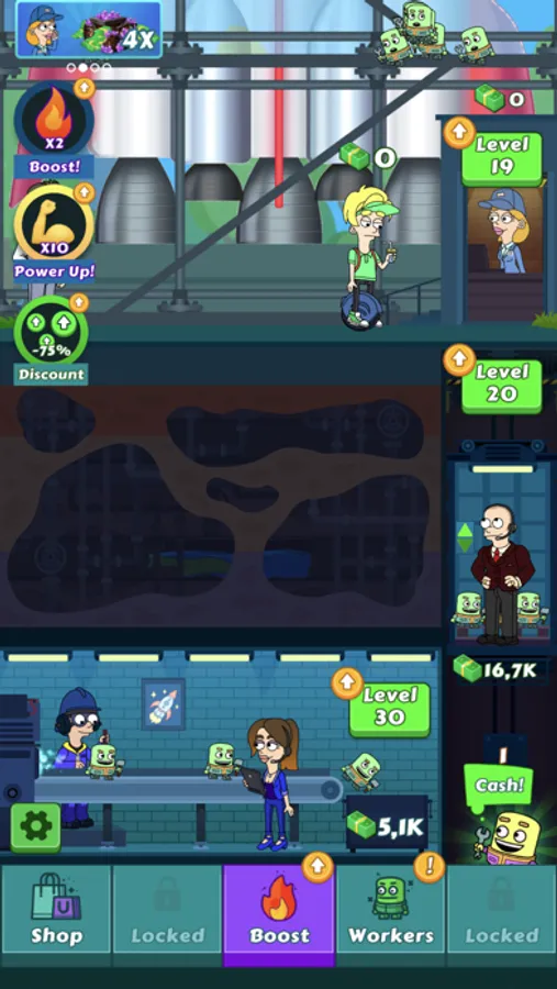 You have access to the unique technology that provides you with your own minions. But of course, you need space to create those minions. Something like a factory! So you have to invest your time and money in that. To make things easier, you have to hire additional staff employees that will be helping you in making things idle. You also have to hire someone who will deliver those minions to your base. After that... well, security, robots, elevators, it takes a lot of people to make your dream come true! So yes, your goal is to manage all of your resources in the most efficient way possible, hire staff members, and make money automatically. Don't forget to upgrade your employees. That way, they will work more efficiently, and your earnings will skyrocket! Oh, and don't be afraid to invest your hard-earned money! Remember that the more you invest, the more you get back!