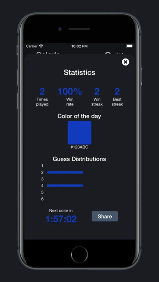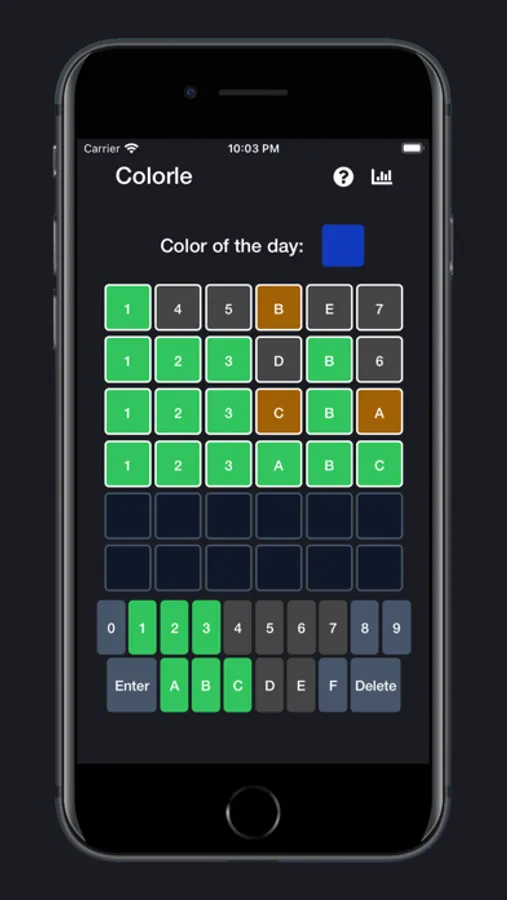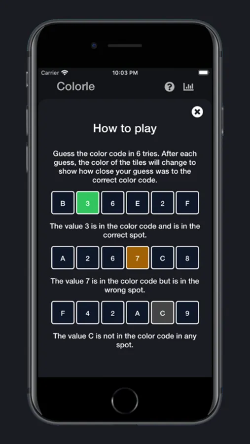 Colorle is a game where you have 6 attempts to figure out a 6 character color code based on hex values.