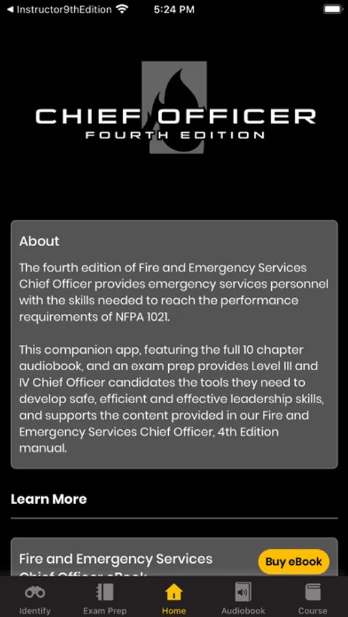 The fourth edition of Fire and Emergency Services Chief Officer provides emergency services personnel with the skills needed to reach the performance requirements of NFPA 1021. This companion app, featuring the full 10 chapter audiobook, and an exam prep provides Level III and IV Chief Officer candidates the tools they need to develop safe, efficient and effective leadership skills, and supports the content provided in our Fire and Emergency Services Chief Officer, 4th Edition manual.