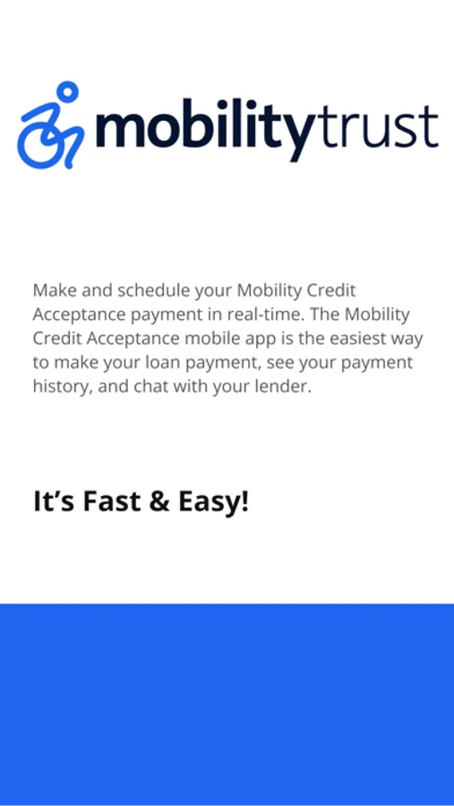 Make and schedule your Mobility Trust payment in real-time. The Mobility Trust App is the easiest way to make your payment, see your payment history, and chat with your provider. It's fast and easy.