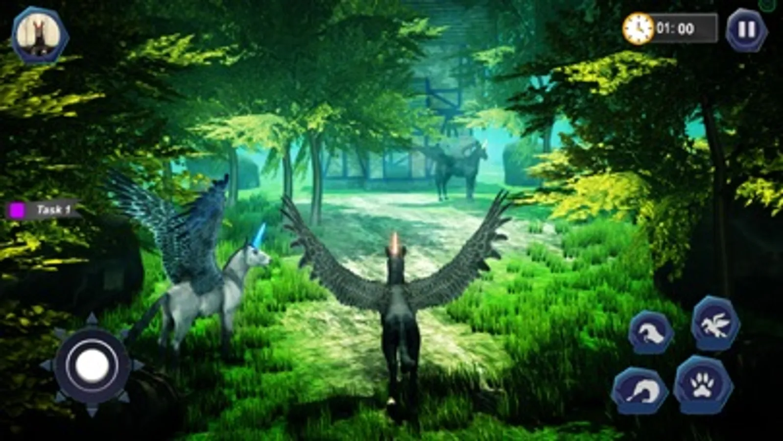 Play this game to be a magic horse in our animal simulator! Turn into a beautiful Pegasus and start adventures, fight with wizards, tigers, dinosaurs, panthers, and many more animals, look for health and magic flowers. This is an animal simulation like you have never seen. We combine your favorite fantasy elements with realistic animal simulations.