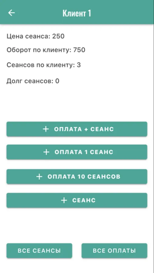 Программа отследит взаиморасчетов с клиентом для услуг, в которых присутствуют несколько сеансов для каждого клиента.