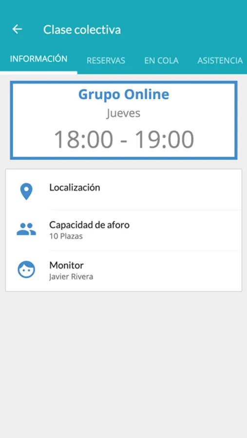- Gestión de horarios y reserva de plaza en clases colectivas.