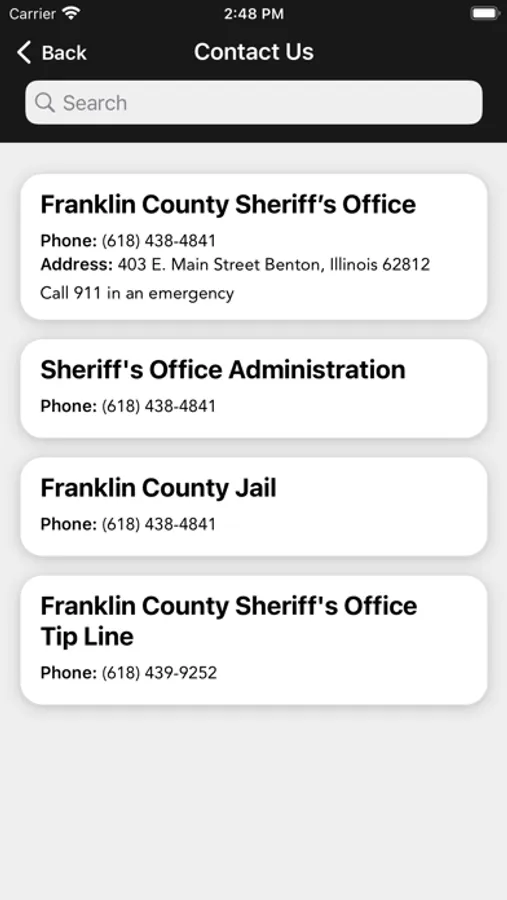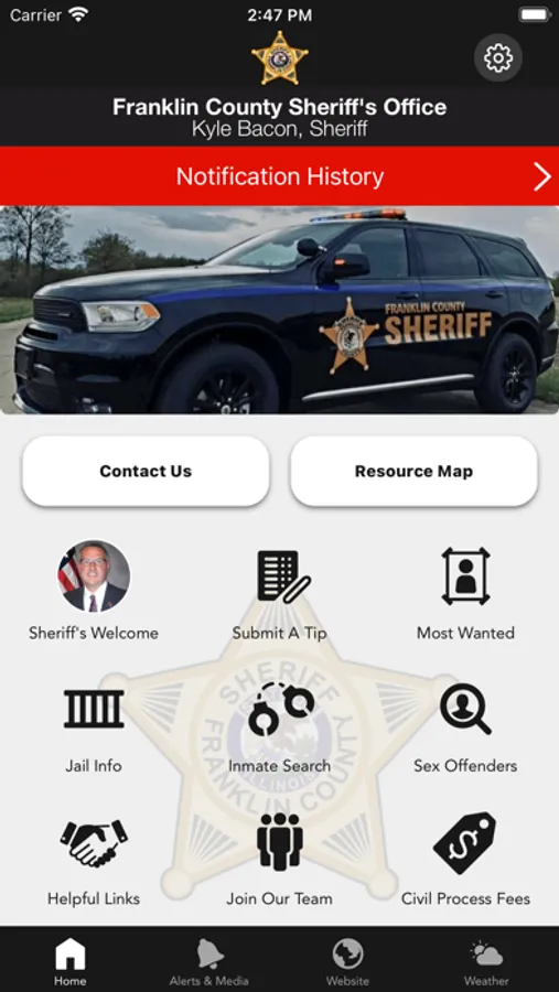 The Franklin County Illinois Sheriff’s Office mobile application is an interactive app developed to help improve communication with area residents. The Franklin County Sheriff App allows residents to connect with the Franklin County Sheriff’s Office by reporting crimes, submitting tips, and other interactive features, as well as providing the community the latest public safety news and information.