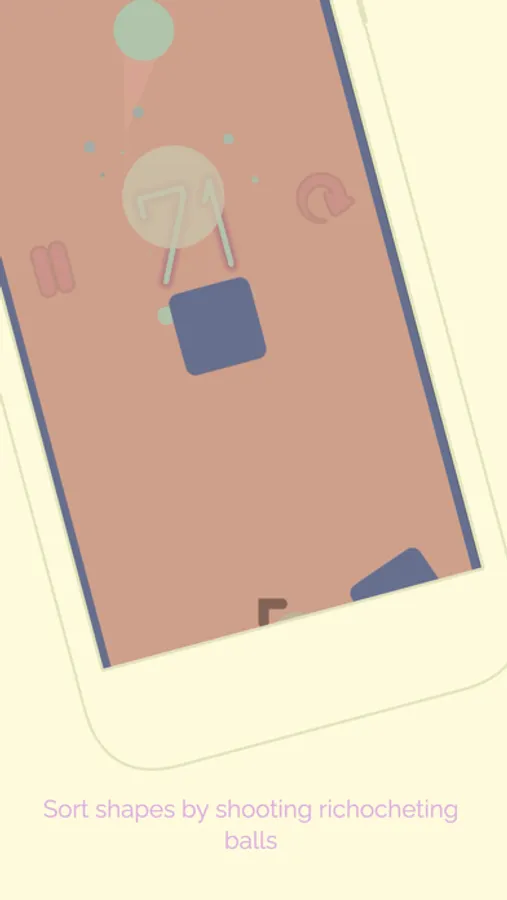 Classic Mode- The player's goal is to sort squares and triangles into their respective sorting areas by shooting ricocheting balls. Improve your score as you play. Challenge yourself, and top your own score.