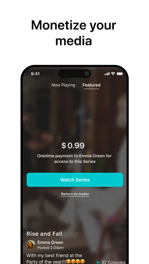 Craft captivating series comprised of 2 minute short-clip episodes. Your series can be watched for a one time payment of $0.99 per viewer. Get discovered in the "Featured Feed" and FamClubb will suggest your series to paying viewers.