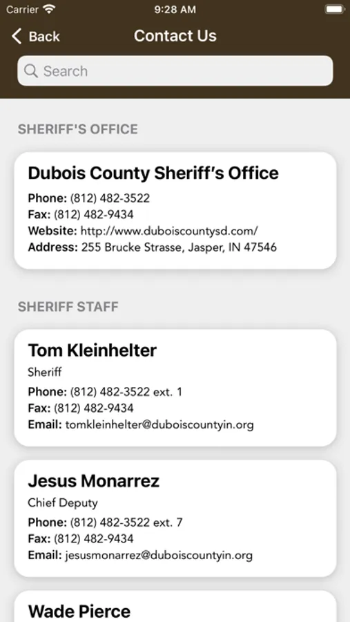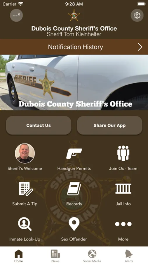 The Dubois County Sheriff’s Office mobile application is an interactive app developed to help improve communication with area residents. The Dubois County Sheriff App allows residents to connect with the Dubois County Sheriff’s Office by submitting tips, viewing current inmates, and other interactive features, as well as providing the community with the latest public safety news and information. The app is another public outreach effort developed by the Dubois County Sheriff’s Office to improve communication with county residents and visitors. This app is not intended to be used to report emergency situations. Please call 911 in an emergency.
