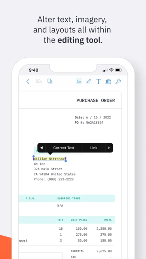 * Easily edit PDF text wherever you are, on any iOS device