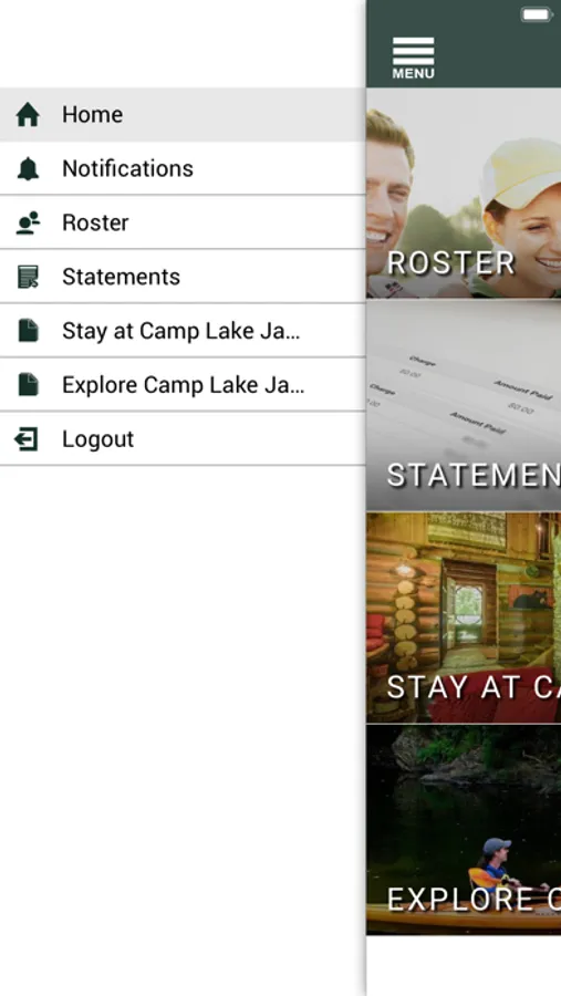 The Camp Lake James app provides members with the ability to view their Statements, make Event Reservations, and order food. Use the Roster to connect with other members and receive notifications on upcoming Club events.
