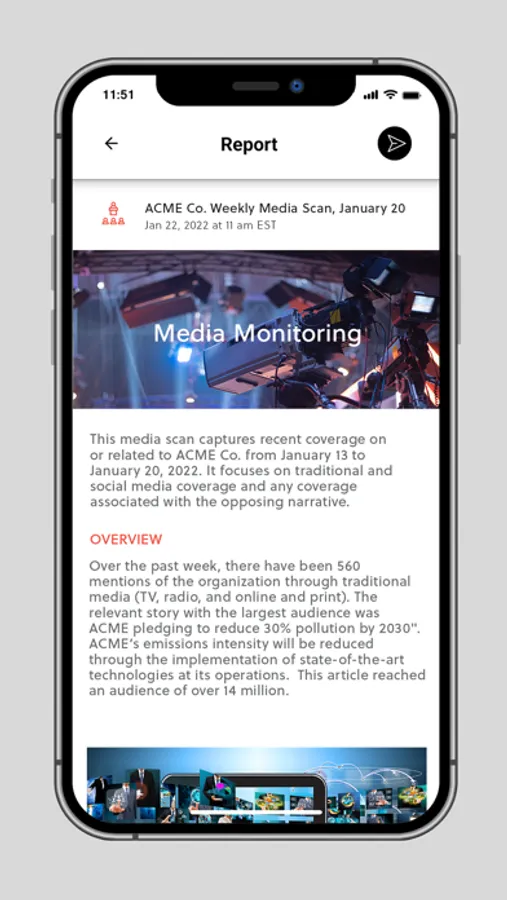 - Insights: Delivery of media monitoring and analysis through Kio’s mobile-optimized reports ensures your team is informed and can rapidly respond to developments.