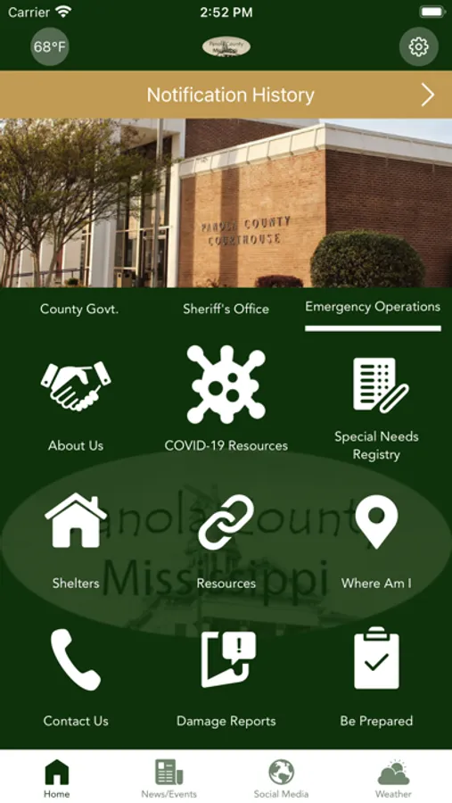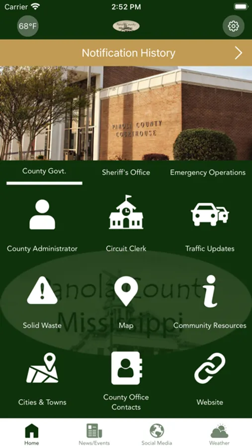 The Panola County Government mobile application is an interactive app developed to help improve communication with area residents. The Panola County Government App allows residents to connect with the Panola County Government by reporting concerns, submitting tips, finding local resources, and other interactive features, as well as providing the community the latest public safety news and information.