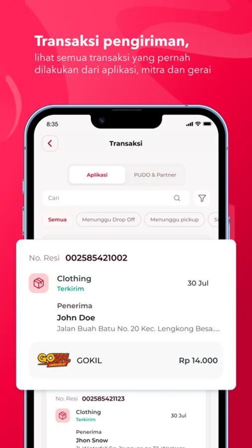 Oiya, di aplikasi ini juga kami tambahin fitur buat order, catatan transaksi, alamat tersimpan dan juga rekap order lho. Buat lebih ngemudahin