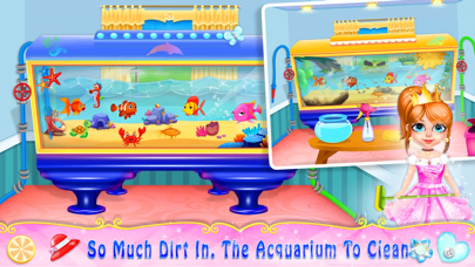So, dear fish tank tycoon, take the sponge, choose your cleaning product, transfer your pet fish into the fishbowl and play fish tank cleaning games! Throw away the garbage, make the glass sparkling clean, and replace the water in the tanked aquarium game. Prepare your fish tank for lovely fish and add new Friends and Toys that can't wait to play with new friends.