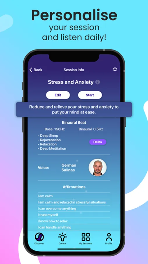 3. Voice - Select the voice that best suits you to combine with the binaural beat to bring the affirmations DEEP into your subconscious.