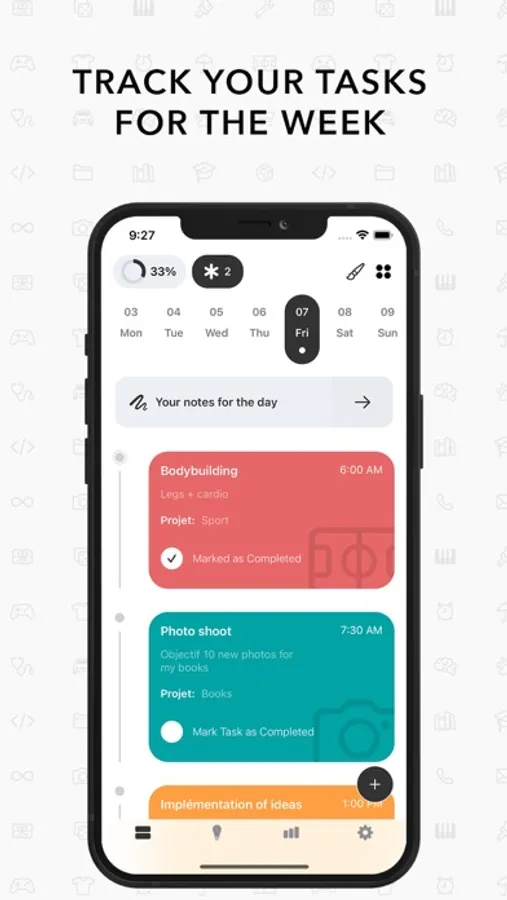 Record your daily thoughts with the integrated note-taking feature in the app. Keep track of your ideas, thoughts, and learnings to help you in your personal development.