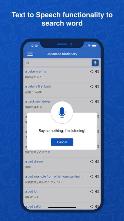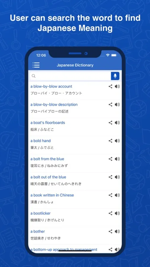 2- In Japanese Dictionary: Translator app, Users can search the word by their voice and read word meaning in both Japanese and English.